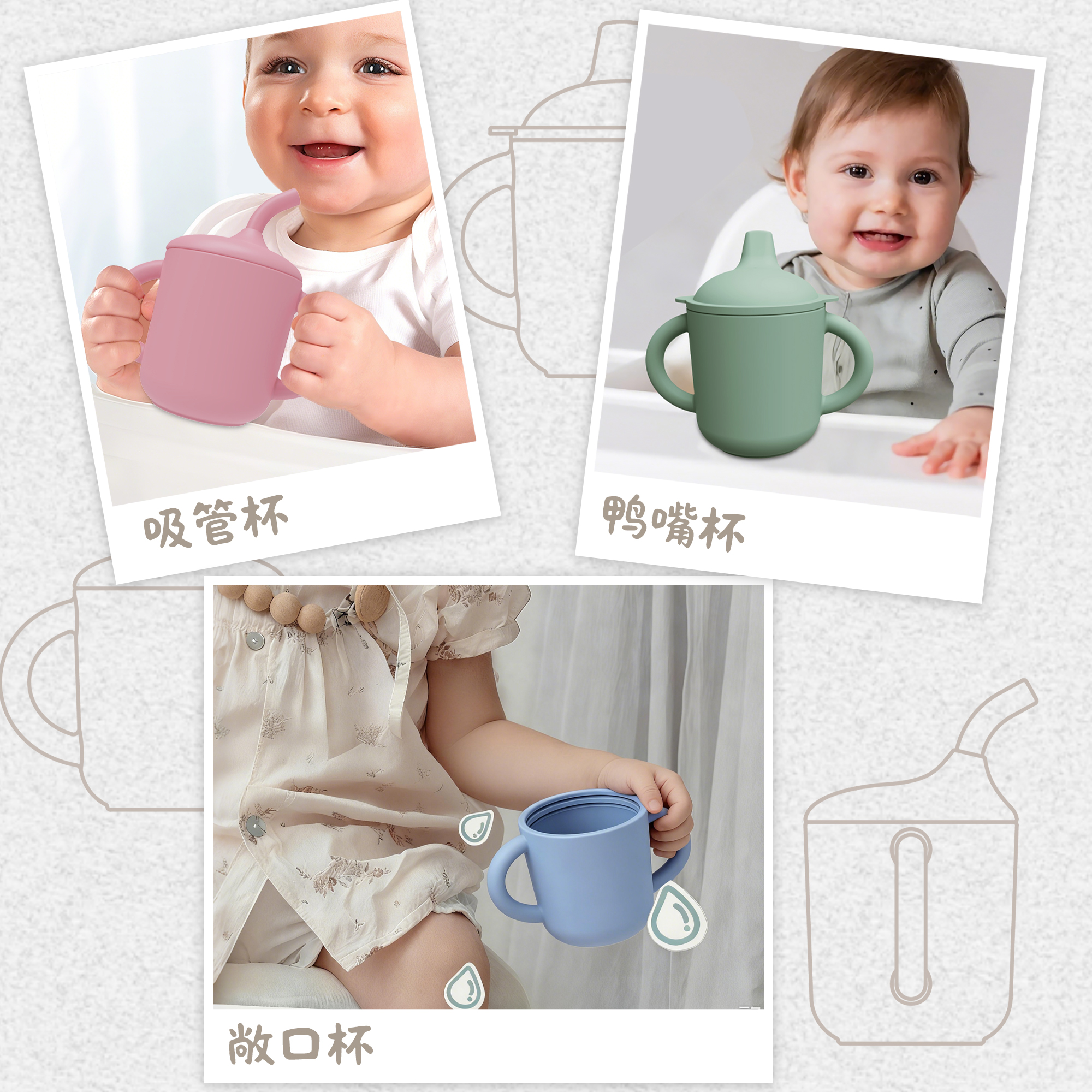 您的位置:首頁 > 產品中心 > 硅膠嬰童用品 > 寶寶硅膠直飲鴨嘴杯喝水杯雙耳學飲杯雙蓋合一