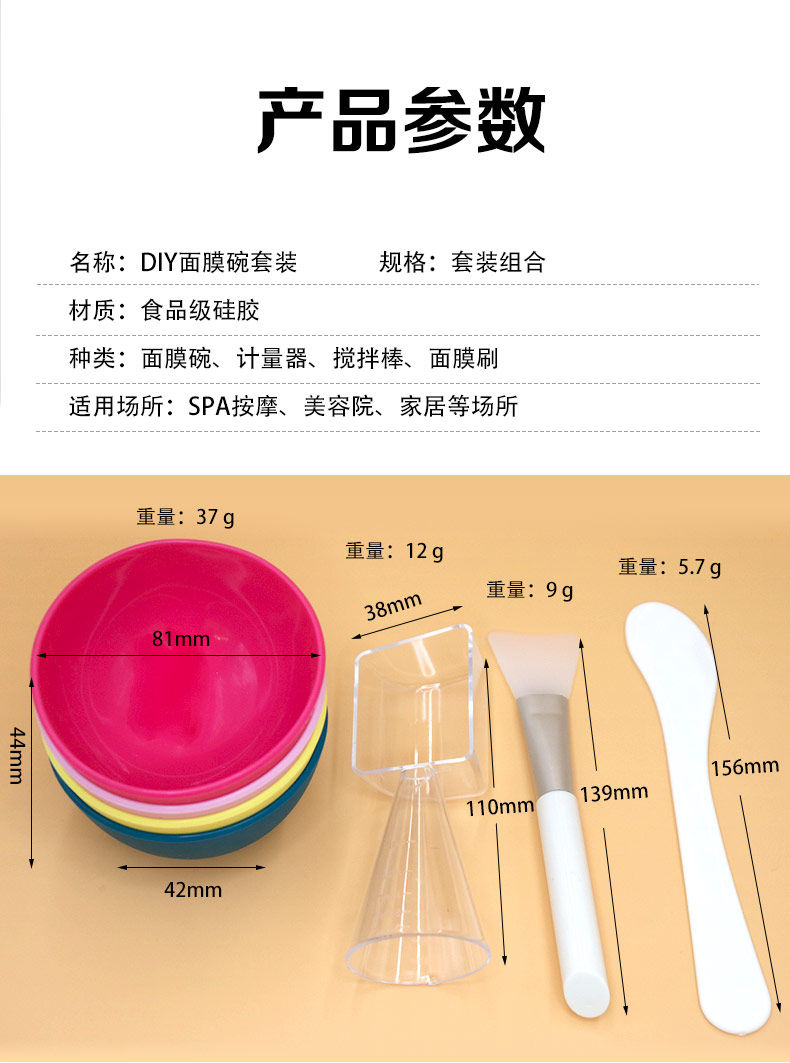 種類(lèi):面膜碗、計(jì)量器、攪拌棒、面膜刷